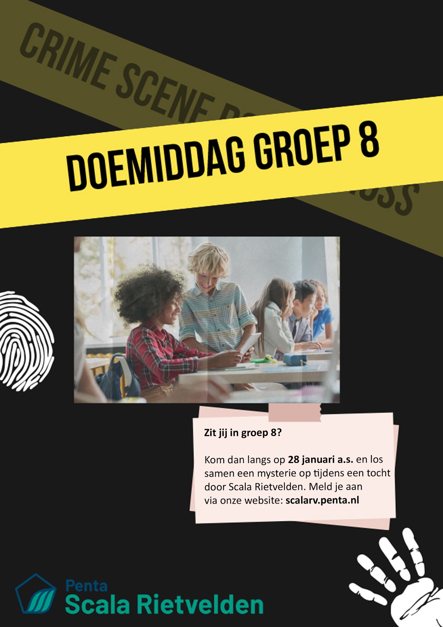 Op woensdag 28 januari 2026 zijn alle leerlingen van groep 8 van harte welkom bij onze doemiddag. Deze middag vindt plaats van 14.30 t/m 16.45 uur. Tijdens deze doemiddag maak je een tocht door Scala Rietvelden. Kom op deze gezellige middag kennismaken met onze school. Weet jij tijdens de drie lesjes de puzzels op te lossen? INSCHRIJVEN DOEMIDDAG 28 JANUARI